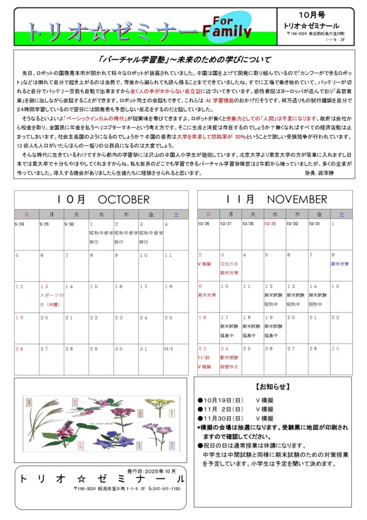 2025年10月のたよりをアップしました。 2025.10.29トリオ通信 Tweet Share +1 Hatena Pocket RSS feedly Pin it トリオ通信 2025年9月のたよりをアップしました。 2025年11月のたよりをアップしました。 関連記事一覧 2025年5月のたよりをアップしました。 2025年7月のたよりをアップしました。 2025年6月のたよりをアップしました。 2025年3月のたよりをアップしました。 2025年11月のたよりをアップしました。 2025年4月のたよりをアップしました。 2025年9月のたよりをアップしました。