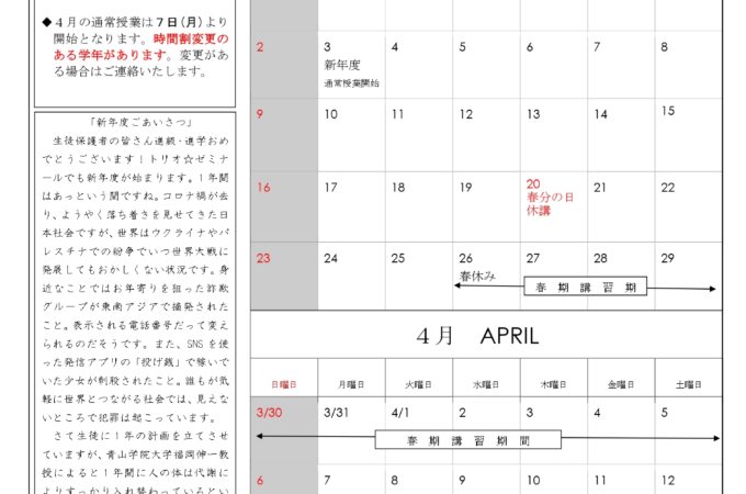 2025年4月のたよりをアップしました。