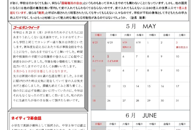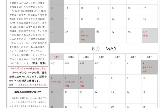 2025年5月のたよりをアップしました。
