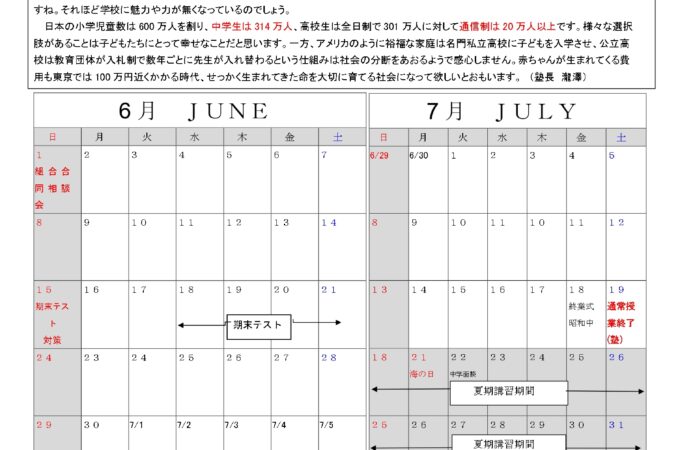 2025年6月のたよりをアップしました。