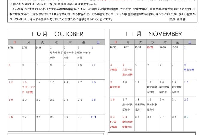 2025年10月のたよりをアップしました。